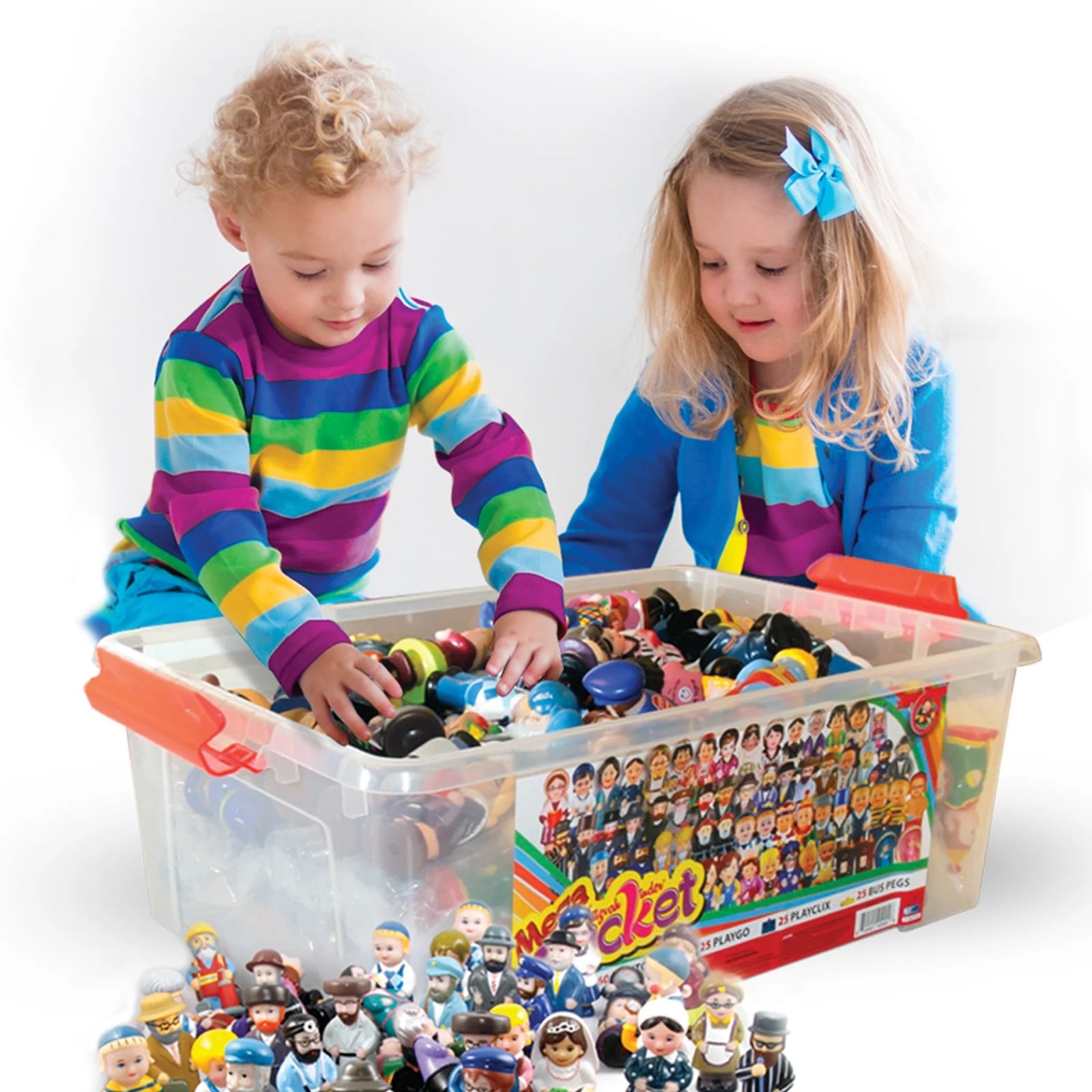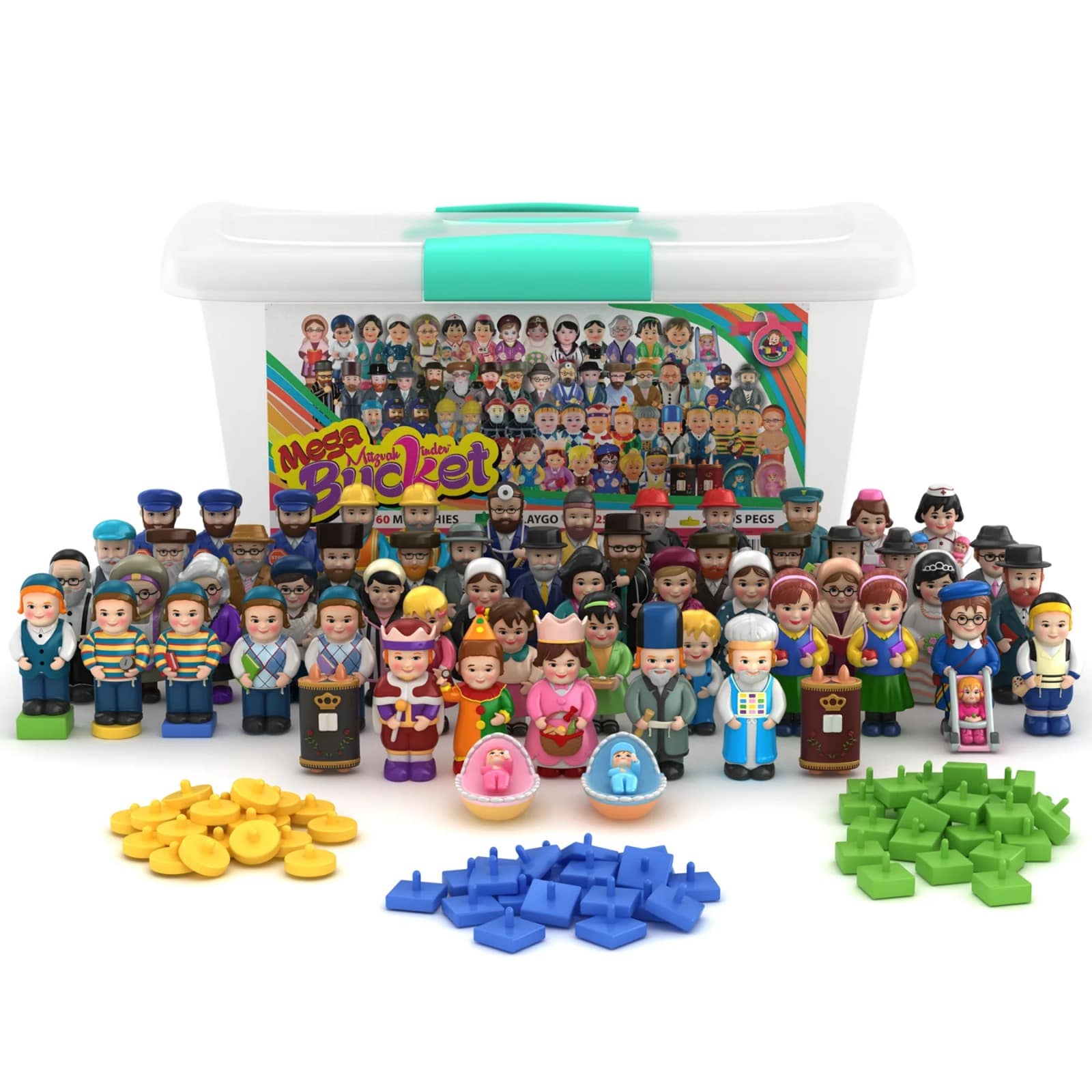 כמות של דלי ענק 60 דמויות עם 75 מעמדים שמתחברים לדופלו, לגו, קליקס ועוד.
